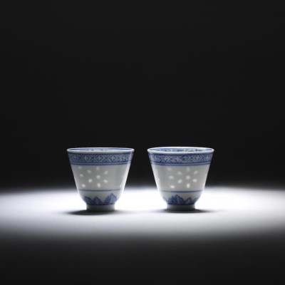 A Pair of Blue and White Cup with Storytelling (Mid-Qing Dynasty)