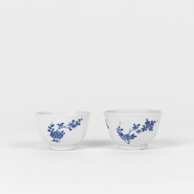A Pair of Blue and White Cup with Flowers (Kangxi)