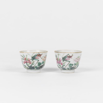 A Pair of Famille Rose Cups with Flowers (Republic Period)