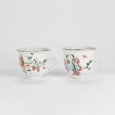 A Pair of Famille Rose Cups with Figures (Republic Period)