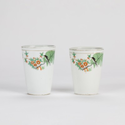 A Pair of Famille Rose Tall Cups with Birds and Flowers (Republic Period)