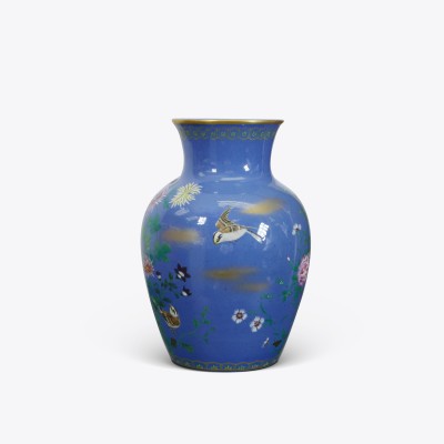 A Blue Ground Famille Rose Vase