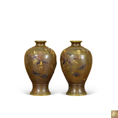 A Pair of Signed Gilt-Bronze Vases