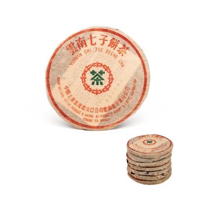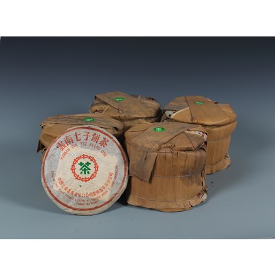 Seven Pieces of 7542 Pu-er Tea Cake in Medium Thick Wrapping, Circa 1980s