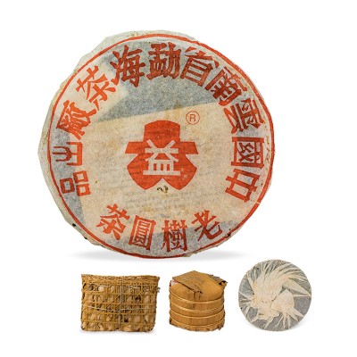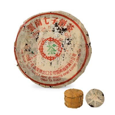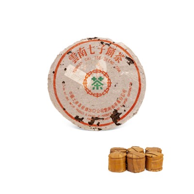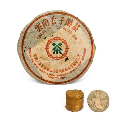 4 Tongs And A Piece Of 8592 Pu-er Tea Cake In Thick Wrapping, 1980's