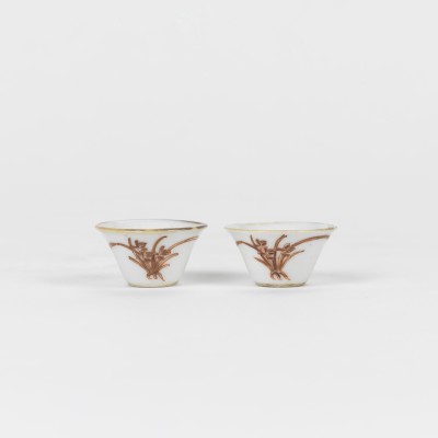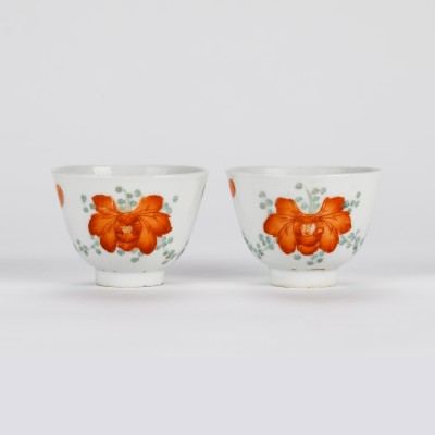 A Pair of Famille Rose Cups with Flowers (Republic Period)