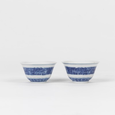 A Pair of Blue and White Cup with Storytelling (Mid-Qing Dynasty)