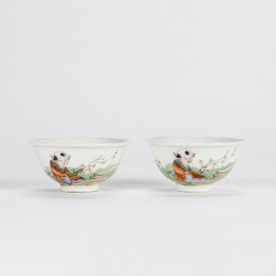 A Pair of Famille Rose Cups with Figures (Republic Period)