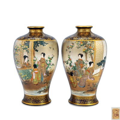A Pair of Signed Gilt-Bronze Vases