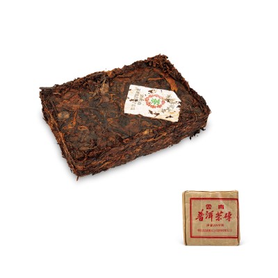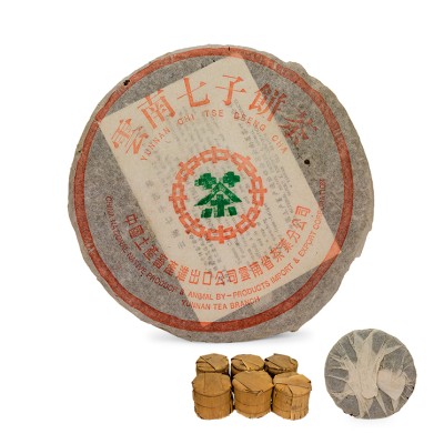 4 Tongs And A Piece Of 8592 Pu-er Tea Cake In Thick Wrapping, 1980's